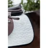 Dit zadeldoek Saddle Pad Velvet met dubbel gedraaide bies is zeer stijlvol en elegant. Biedt een schok dempende functie aan tussen de rug van het paard en het zadel en voorkomt eventuele wrijving. Het logo is centraal geplaats zodat er nog mogelijkerwijs plaats is voor borduurwerk. Er zijn bovenaan geen vervelende bandjes aanwezig om het zadel vast te maken, enkel bandjes voor de singel. Wasbaar op 30°, geen droger.