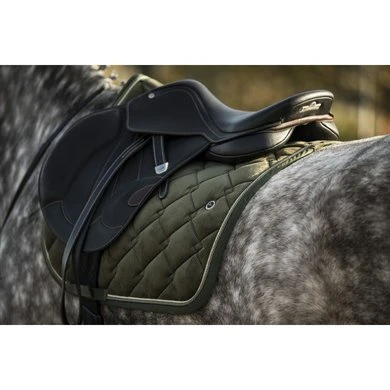 Zadeldoek “Luxor”. 3D fluwelen buitenzijde, 240g synthermax fiberfill, 5mm dichtheid, bamboe sneldrogende binnenvoering en sierkoord.