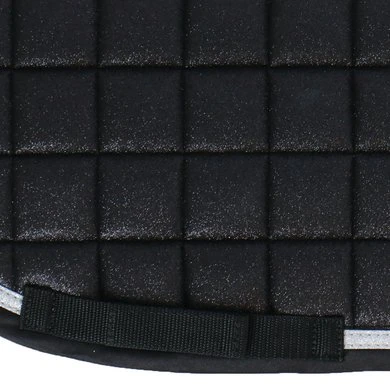 Zadeldoek “Sparkling”, Glitter buitenzijde, 8mm dichtheid, 240g synthermax fiberfill en airflow quick-dry binnenvoering. Afwerking met zilveren bies.