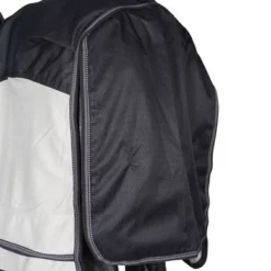 De LeMieux Shower-Tek Fly Rug: de ideale deken voor onvoorspelbare weersomstandigheden! De duurzame, waterproof toplijn houdt de rug droog wanneer het regent en blokkeert UV tegen verkleuring van de vacht van het paard. Het lichtgewicht, antibacterieel en antistatisch micromesh vormt een barrière tegen vliegen, muggen en dazen en is optimaal ademend. De extra grote buikflap met 3 sluitingen beschermt de buik en zorgt er tegelijkertijd voor dat de deken altijd op zijn plek blijft, terwijl de lange staartflap de staart en achterbenen beschermt. De voorsluiting van de deken heeft een lichte hoek die de druk op de borst van het paard verdeelt en daardoor vermindert. Het gepatendeerde onafhankelijke zijdeel onderaan de deken zorgt voor een onderbreking in de zoomlijn, waardoor de bewegingsvrijheid van het paard wordt vergroot en de druk wordt verminderd