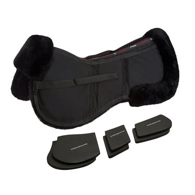 Het Pro-Sorb-systeem biedt een unieke combinatie: alle voordelen van een luxe Merino lamsvel-onderlegger met de flexibiliteit om de pasvorm en balans van het zadel aan te passen. Het is niet nodig om als tweede laag extra gel- en schuim- en riserpads aan te brengen. Deze kunnen vaak gaan schuiven en zijn moeilijk nauwkeurig te plaatsen. De Pro-Sorb drie pocket pad geeft u meerdere keuzes in één product. Alle vulpads kunnen zelfs uit hun bovenste vakken worden verwijderd en het product kan indien nodig worden gebruikt als een normale Lambskin Half Pad. De vulpads gaan gemakkelijk in drie vakken aan de bovenkant van de Lambskin Half Pad. Deze vulkussens bedekken de belangrijkste gewichtdragende gebieden en bieden extra absorptie en opvulling. De pads zijn gemaakt van traagschuim en worden zacht als ze warm zijn. Het natuurlijk ademend vermogen en vochtafdrijvende effect van lamsvel samen met de lichte schuimkussentjes zorgt voor minimale warmte- en zweetophoping. De volledige set van zes inzetstukken inbegrepen. Plus een extra set van zes 9 mm-pads voor verdere aanpassing.
