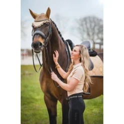 Ons prachtige Mrs. Ros oornetje beschikbaar 1 maat. Het is een klassiek, gehaakt ontwerp met een metalen Mrs. Ros logo op de voorkant van het masker. De flexibele oren zijn gemaakt van neopreen materiaal voor een effectieve geluidsreductie. Het rekbare, ademende, gehaakte materiaal biedt hoogwaardige bescherming tegen insecten en vliegen. Voorzien van mooie gedraaide koorden.