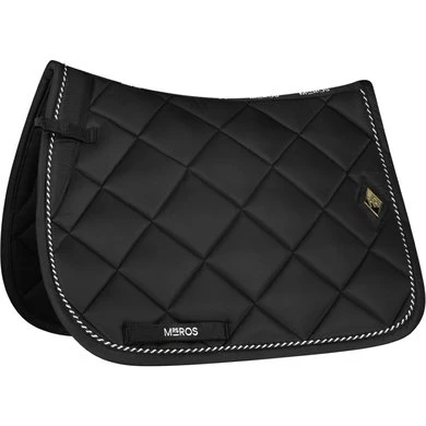 Het gewatteerde Mrs. Ros zadeldek: ICONIC is het perfecte zadeldek voor wedstrijden en training. Combineer het zadeldek van je paard met je algehele rij-ensemble voor een leuke paardensportlook. Gemaakt met een ademende, gewatteerde: matte satijnen stof die helpt de lichaamstemperatuur van je paarden onder controle te houden. Gevoerd met een katoenen wafelstructuur die de perfecte grip biedt: zweetabsorberend en een anatomisch design zorgt voor de juiste pasvorm. Het onderhoudsvriendelijke katoenen materiaal absorbeert zweet en stoot vuil af, terwijl het ook antibacteriële eigenschappen heeft. De duurzame stof zorgt ervoor dat je paardrijdek er geweldig uitziet, ondanks de gebruikelijke slijtage. Het zit allemaal in de details. Dit prachtige zadeldek heeft een verfijnd: strak, ruitvormig doorgestikt ontwerp. Geaccentueerd met contrasterende kleuren in de touwbies en bies: en voorzien van een zilveren of gouden metalen Mrs. Ros-logo. De perfecte: functionele paardrijdeken om toe te voegen aan je verzameling paardrijuitrusting!