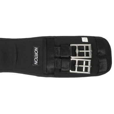Memory foam binnenkant met nylon aan de buitenkant en absorberende polyester mesh aan de binnenkant. Anti-schurende randen. Roestvrij stalen rolgespen op dubbel dik elastische banden aan de beide uiteindes van de singel en polypropyleen passanten voor de singelstoten.