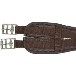 Singel van noppen vinyl dat de irritatie veroorzaakt door zweten en schuren verminderd. Wordt geleverd met een centrale ring en twee polypropyleen zijbanden voor het bevestigen van de hulpteugels. Rolgespen van vernikkeld staal, aan één zijde op elastische banden gemonteerd.