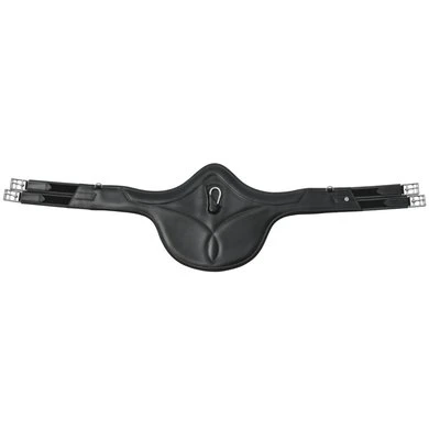 Buikflap van buffelleer gevoerd met rundleer. Drie dubbel elastiek aan elke kant. Drukknoop in het midden en een ring aan elke kant. Roestvrijstalen rolgespen gemonteerd aan drievoudige elastische banden aan beide zijden.