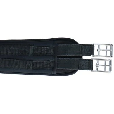 Memory foam binnenkant verstevigt met polypropyleen banden vastgemaakt op een cover gemaakt van nylon aan de buitenkant en absorberende polyester mesh aan de binnenkant. Anti-schurende randen. Centrale ring voor hulpteugels. Roestvrij stalen rolgespen op polypropyleen riemen en dubbel dik elastische banden aan het uiteinde van de singel.