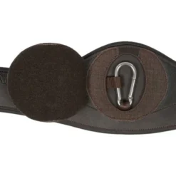 De leren singel van Passier heeft aan beide kanten elastische uiteinden, een musketonhaak in het midden voor de borstplaat en aan elke kant een D-ring voor de extra teugels.