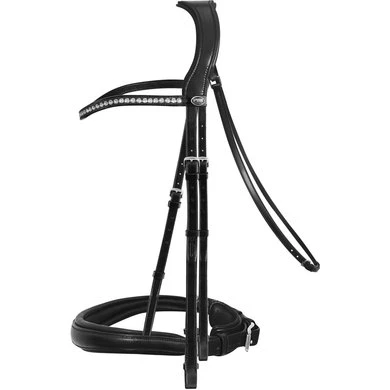 Het nieuwe Altlas dubbele hoofdstel van Passier is bijzonder paardvriendelijk en verlicht de druk met een anatomisch gevormde en zacht gevoerde hoofdband en een anatomisch gevormde, zachte neusriem. De elegante, gebogen frontriem met sprankelende Swarovski Elements in Clear Crystal zorgt voor een bijzonder aantrekkelijke look. Dit stang & trens hoofdstel wordt standaard geleverd met 2 glad leren teugels waarvan de trens teugel aan de binnenkant is voorzien van fijn stroef rubber.