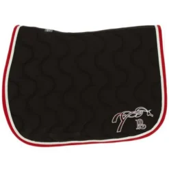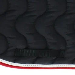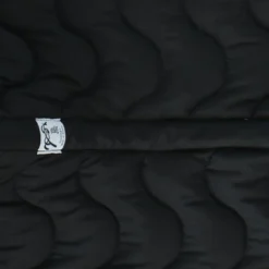 Golvend gestikt gevuld sjabrak. Gevoerd met witte honingraat stof. Twee singellussen van nylon (één aan iedere kant). Geborduurd springend paard aan de linkerkant. Buitenkant: 60% polyester + 40% katoen. Vulling: 100% Polyester. Voering: 100% katoen. Machine wasbaar op 30°C. Niet in de droger.
