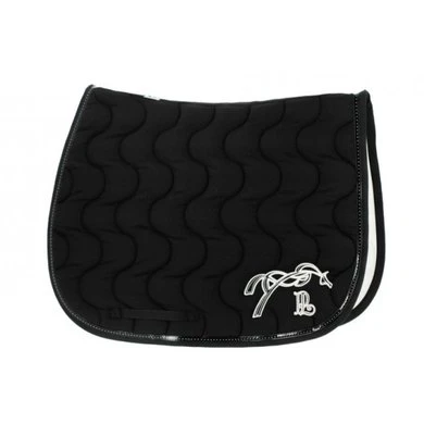 Golvend gestikt gevuld sjabrak. Gevoerd met witte honingraat stof. Twee singellussen van nylon (één aan iedere kant). Geborduurd springend paard aan de linkerkant. Buitenkant: 60% polyester + 40% katoen. Vulling: 100% Polyester. Voering: 100% katoen. Machine wasbaar op 30°C. Niet in de droger.