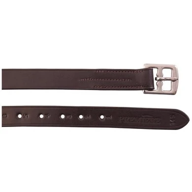 Lederen beugelriem met nylon inlage bij de gespbevestiging en voorzien van roestvrijstalen gespen, 25 mm.
