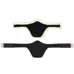 Deze lederen, anatomische singel met buikflap bevat een afneembare, synthetische schapenvacht voor de gevoelige paardenhuid.