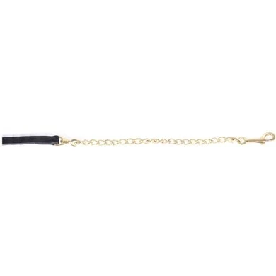 Lederen voorbrengleidsel, 19 mm met een goudkleurige ketting met musketon. De ketting heeft een lengte van 45 cm en het lederen leidsel heeft een lengte van 150 cm.
