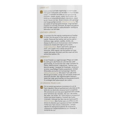 Met een doekje of sponsje goed inwrijven, enige tijd laten intrekken en zonodig uitwrijven. Bij regelmatig gebruik blijft het leder soepel en waterafstotend. Verlengt de levensduur van het leder.