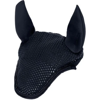 Het gehaakte oornetje Crystal Brilliance Style van Schockemöhle Sports valt op door zijn omrande rand met koord en een strassketting. De oren zijn elastisch zodat ze perfect passen bij de individuele vorm van de oren van het paard. De vliegenkap wordt afgerond met een logoborduursel op het linkeroor. • Gehaakte sluier met elastische oren