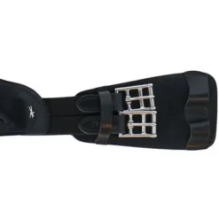 De anatomisch gevormde korte dressuursingel PANDORA PRO van Schockemöhle Sports houdt het zadel op zijn plaats, zonder het paard te beperken. Uitgesneden gebieden voor de elleboog en flexibele elementen zorgen voor veel bewegingsvrijheid, bovendien wordt de druk op de borst dankzij de brede middenplaat zelfs verdeeld. Elastiek aan beide zijden en massieve rolgespen zorgen voor een gemakkelijke aanpassing van de singel.