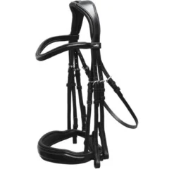 Het stang en trens hoofdstel met anatomisch gevormde neusriem heeft een uniek halsstuk. MILAN is speciaal aangepast aan de anatomie van het paard en laat een onbeperkte beweging van de oren toe. Door de drukvermindering in gevoelige gebieden rond jukbeenderen en nek wordt het comfort van het paard aanzienlijk verbeterd. MILAN is uitgerust met twee frontriemen: een eenvoudige leren frontriem en een met een slanke kristallen ketting