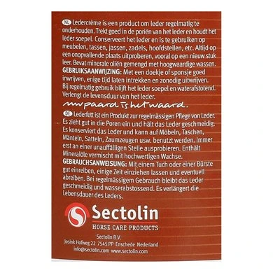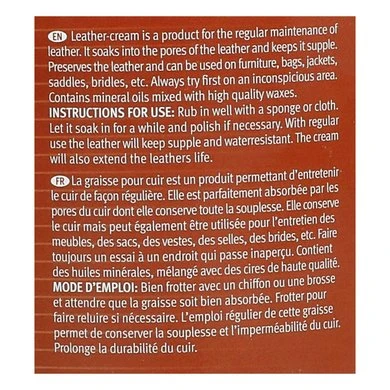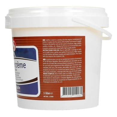 Ledercrème is een product om leder regelmatig te onderhouden. Trekt goed in de poriën van het leder en houdt het leder soepel. Ledercrème onderhoudt het leder en heeft als eigenschap dat het snel in het leder trekt en het weer soepel, zacht en waterafstotend maakt. Conserveert het leder en is te gebruiken op meubelen, tassen, jassen, zadels, hoofdstellen, etc. Altijd op een onopvallende plaats uitproberen, vooral op een nieuw stuk leer. Bevat minerale oliën gemengd met hoogwaardige wassen.