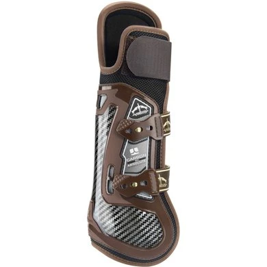 Innovatieve peesbeschermer ideaal voor springconcours, gekenmerkt door de anatomische vorm die maximaal comfort en perfecte positionering op het voorbeen van het paard garandeert. Gesigneerd door Marcus Ehning. De extra bescherming is bedoeld voor paarden die bij het springen of bij andere gelegenheden de neiging hebben om hun voorknie te raken met het tegenovergestelde ijzer.