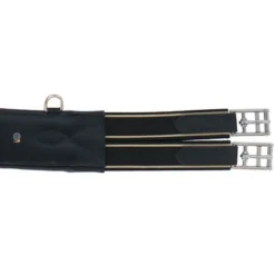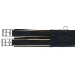Beschermt tegen hoefijzers. Hoogwaardig leer, zacht gewatteerd. Elastiek aan beide uiteinden, roestvrijstalen rolgespen.