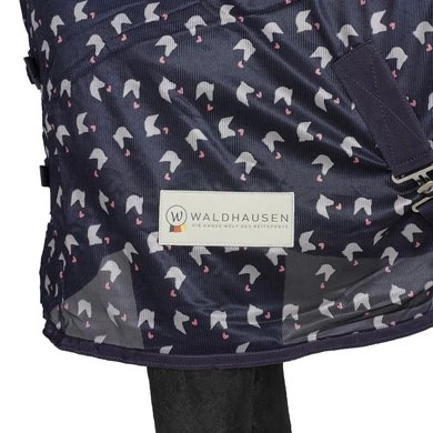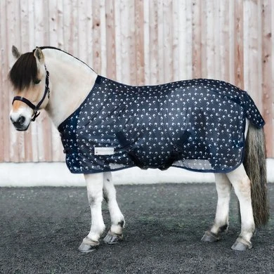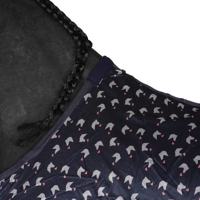 Lichtgewicht vliegendeken met lieve all-over print, met dubbele voorsluiting, gekruiste banden met elastiek en bilkoord.