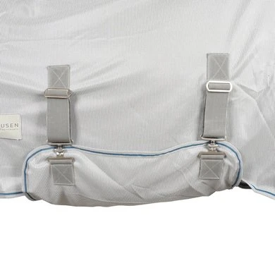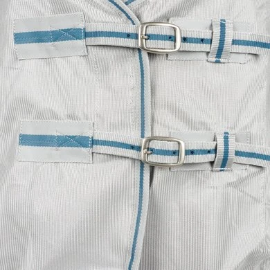 Hoge kwaliteit vliegendeken gemaakt van een fijnmazige stof. De buik- en staartflappen van de deken zorgen voor bescherming tegen vervelende insecten. De dubbele voorsluiting, schopplooi, filetkoord en beenriemen garanderen een perfecte pasvorm. Voor extra bescherming van de nek en manen van het paard adviseren wij het bijpassende nekdeel 44978527 .