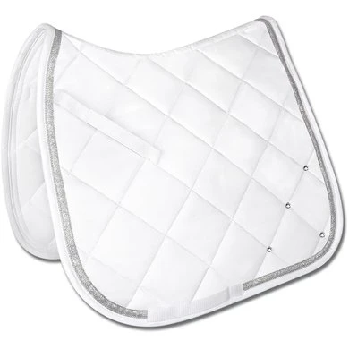 Klassiek, eersteklas zadeldek met glitterafwerking. De extra strass-steentjes maken van dit zadeldek een echte blikvanger. De functionele onderkant zorgt voor een optimaal ademend vermogen. 8 mm schuim en 250 g/m² vulling zorgen voor een ideale drukverdeling.