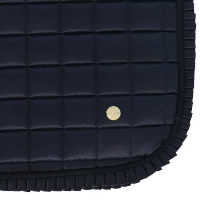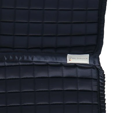 Elegant zadeldek in zijdelook met gerimpelde rand. Het wegglijden van het zadel wordt voorkomen met behulp van het aanslagkussen en de enkelvoudige of onderverdeelde singellus. De zweetabsorberende bamboevoering zorgt voor een bijzonder draagcomfort.