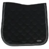 Kwaliteitszadeldek van glanzend buitenmateriaal. Opvallend is ook het zilverkleurige metalen logo en het glinsterende koord. In het zadelgedeelte bevinden zich drie siliconenapplicaties die voorkomen dat het zadel wegglijdt. Er kan gekozen worden voor een enkele of een onderverdeelde stijgbeugelriemlus.