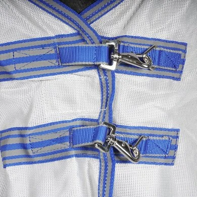 De Weatherbeeta Comfitec Airflow II Combo Neck is van zacht, duurzaam polyester-gaas materiaal en heeft een nieuwe Ultra-buikvlap en volledige omslagstaartvlap voor premium bescherming. Daarnaast heeft de deken en elastische inzet bij de schoft voor extra comfort tijdens het grazen. De Ezi-Clip voorsluiting en de traditionele zijvouw voor natuurlijke beweging maken de deken compleet. De schouders zijn zacht onderlegd met gevoerd elastisch nylon materiaal. Ook de manen en staartflap en elastische zijn met nylon materiaal onderlegd. De deken heeft verstelbare en afneembare beenriemen. Bovendien biedt de deken 70% UV-bescherming.
