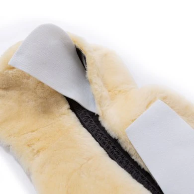 Het zadeldek met twee zakken aan elke kant. Het 2-pocket systeem maakt deze pad zeer variabel. Geleverd zonder vulling. Deze is apart te bestellen. De lamsvacht is aan de voorkant naar de bovenzijde weggestopt en kan worden gebruikt om het zadel te positioneren. De lamsleren rand aan de achterkant fungeert als extra randbescherming en zorgt voor een visueel decoratieve touch. Onderkant is gemaakt van echt lamsleer (het ruggenmergkanaal is vrij gelaten van lamsvel) Bovenkant is gemaakt van onze slijtvaste stof voor zadeldek Met twee zakken aan elke kant Het kussen is bevestigd met klittenband op de singel van het zadel Machine wasbaar met een lamsvacht wasmiddel en bestand tegen drogen in de droogtrommel