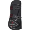 De 100% gemaakt in Italië “CARBON AIR BALANCE VELCRO pees” is onderzocht om springende paarden te beschermen tegen botsingen en kneuzingen bij de kogel van de voorpoot en een deel van het kanon, terwijl het ondersteuning van de pezen biedt. Ze zijn samengesteld door een externe TPU-structuur met gedifferentieerde dikte, die transpireert dankzij het geperforeerde neopreen en geventileerd door 6 luchtopeningen boven de kogel. Gel-Tech zit tussen de externe TPU-structuur en de neopreen-ondersteuning, waar nodig, als schokdemper en comfortabele vulling. Koolstofvezelelementen zijn onder de schaal aanwezig om de verbindingen thermisch te isoleren van de warmte die wordt gegenereerd door externe wrijving, terwijl de mechanische weerstand tegen schokken wordt verhoogd. Aan de binnenzijde, dicht bij de lange koot, is een Flex-Zone gecreëerd, noodzakelijk voor maximale bewegingsvrijheid tot het ledemaat. Een veilige sluiting wordt gegarandeerd door klittenbandsluitingen, die kunnen worden verwijderd door een snelkoppelingssysteem dat moet worden vervangen als ze leeg zijn. De afmetingen en de absolute ergonomische vorm zijn ontwikkeld om de ledemaatstructuur nauwkeurig te kopiëren, waardoor een perfecte positionering wordt gegarandeerd en elke vorm van stress wordt vermeden. Ze zijn ook uitgerust met een magnetisch apparaat dat de cellulaire functie verbetert, de prestaties van paarden en het dynamische evenwicht verbetert. De gebruikte permanente magneet bestaat uit een sterk magnetische legering van Neodymium, ijzer en boor met een nikkelcoating, die een magnetische fluxdichtheid van 2600 Gauss kan uitoefenen. Bij verschillende tests met behulp van dierenartsen en professionele renners is vastgesteld dat het gebruik van dit apparaat in de buurt van het spier-peesapparaat de vermoeidheid van de ledematen sterk vermindert en een toename van de vasculaire bloedstroom en lymfatische circulatie veroorzaakt, met meerdere nuttige gevolgen. De voordelen die worden veroorzaakt door een verhoogde vasculaire bloedstroom en door de magnetische polarisatie, die bij paarden als mensen kan worden vastgesteld, zijn ontstekingsremmende en pijnstillende effecten, versterking van botten en gewrichten, evenals versnelling van het proces van toxinesuitdrijving en van absorptie van spieren melkzuur. Die voordelen leiden tot de verbetering van bewegingen en springprestaties van het paard.