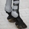 De 100% in Italië gemaakte “CARBON AIR EP-pees” heeft een extra bescherming die nodig is voor paarden die de neiging hebben om het gebied van hun tegenovergestelde ledematen onder de knie te raken met hun hoefijzer. De extra bescherming wordt gerealiseerd met een ergonomische uitbreiding van de neopreen vulling bedekt met een anti-slijtage carbon-look film. Ze zijn bestudeerd om springende paarden te beschermen tegen botsingen en kneuzingen bij de kogel van de voorpoot en een deel van het kanon, terwijl ze peesondersteuning bieden. Ze zijn samengesteld door een externe TPU-structuur met gedifferentieerde dikte, die transpireert dankzij het geperforeerde neopreen en geventileerd door 6 luchtopeningen boven de kogel. Gel-Tech zit tussen de externe TPU-structuur en de neopreen-ondersteuning, waar nodig, als schokdemper en comfortabele vulling. Koolstofvezelelementen zijn onder de schaal aanwezig om de verbindingen thermisch te isoleren van de warmte die wordt gegenereerd door externe wrijving, terwijl de mechanische weerstand tegen schokken wordt verhoogd. Aan de binnenzijde, dicht bij de lange koot, is een Flex-Zone gecreëerd, noodzakelijk voor maximale bewegingsvrijheid tot het ledemaat. De elastische banden met snelsluiting zijn gekalibreerd voor een veilige sluiting, ze zijn in feite voorzien van een dubbel vergrendelingssysteem (horizontaal / verticaal). De afmetingen en de absolute ergonomische vorm zijn ontwikkeld om de ledemaatstructuur nauwkeurig te kopiëren, waardoor een perfecte positionering wordt gegarandeerd en elke vorm van stress wordt vermeden