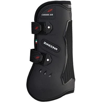 De 100% gemaakt in Italië “CARBON AIR VELCRO pees” is onderzocht om springende paarden te beschermen tegen botsingen en kneuzingen bij de kogel van de voorpoot en een deel van het kanon, terwijl het ondersteuning van de pezen biedt. Ze zijn samengesteld door een externe TPU-structuur met gedifferentieerde dikte, die transpireert dankzij het geperforeerde neopreen en geventileerd door 6 luchtopeningen boven de kogel. Gel-Tech zit tussen de externe TPU-structuur en de neopreen-ondersteuning, waar nodig, als schokdemper en comfortabele vulling. Koolstofvezelelementen zijn onder de schaal aanwezig om de verbindingen thermisch te isoleren van de warmte die wordt gegenereerd door externe wrijving, terwijl de mechanische weerstand tegen schokken wordt verhoogd. Aan de binnenzijde, dicht bij de lange koot, is een Flex-Zone gecreëerd, noodzakelijk voor maximale bewegingsvrijheid tot het ledemaat. Een veilige sluiting wordt gegarandeerd door klittenbandsluitingen, die kunnen worden verwijderd door een snelkoppelingssysteem dat moet worden vervangen als ze leeg zijn. De afmetingen en de absolute ergonomische vorm zijn ontwikkeld om de ledemaatstructuur nauwkeurig te kopiëren, waardoor een perfecte positionering wordt gegarandeerd en elke vorm van stress wordt vermeden.